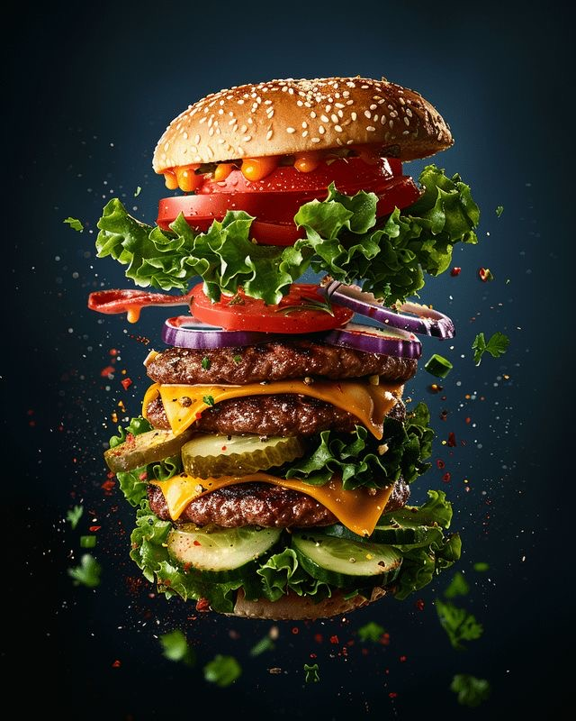 PAO MOLHO ,TOMATE ,ALFACE 2 HAMBURGUER CASEIRO ,BACON EM TIRAS ,QUEIJO DUPLO E CHEDDAR DUPLO .
